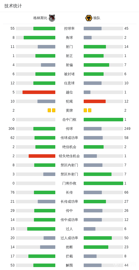 第60分钟,圣地亚哥-布埃诺门前抢射得手,狼队1-0领先格林斯比