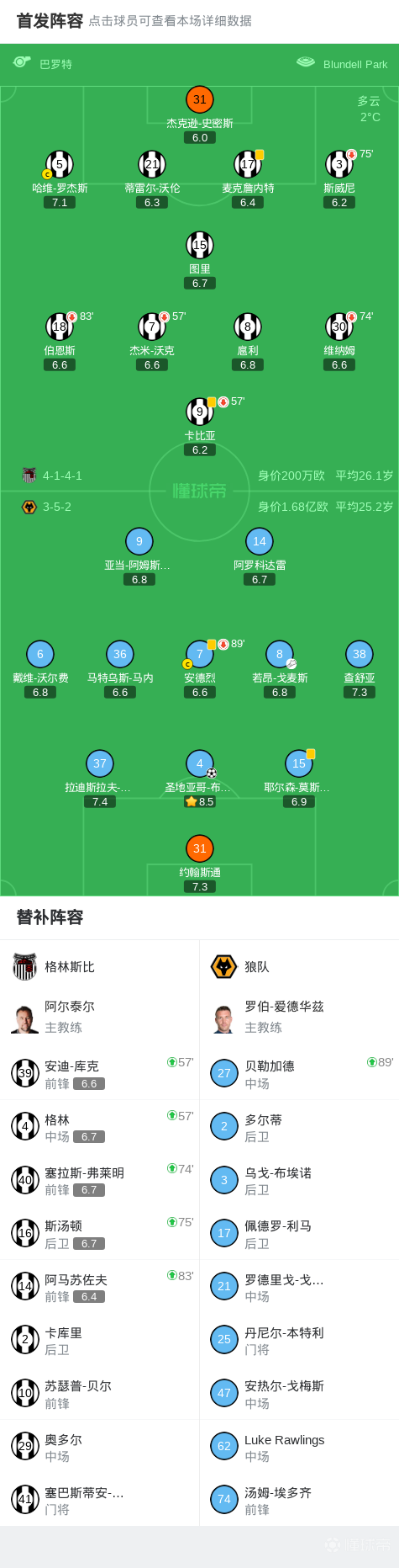 北京时间2月15日英格兰足总杯第四轮,格林斯比对阵狼队。比赛场地条件稍显恶劣,圣地亚哥-布埃诺抢射破门打进全场唯一进球。最终,狼队客场1-0艰难战胜格林斯比,成功晋级下一轮。