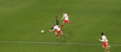 第88分钟,格鲁达禁区内兜射破门,莱比锡2-2沃尔夫斯堡